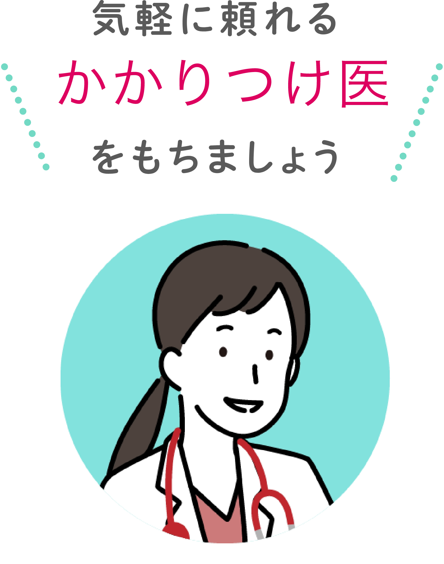 ※「かかりつけ医」とは、病気の治療・予防など自分や家族の健康に関して日常的に相談できる身近な診療所のお医者さんのことです。
